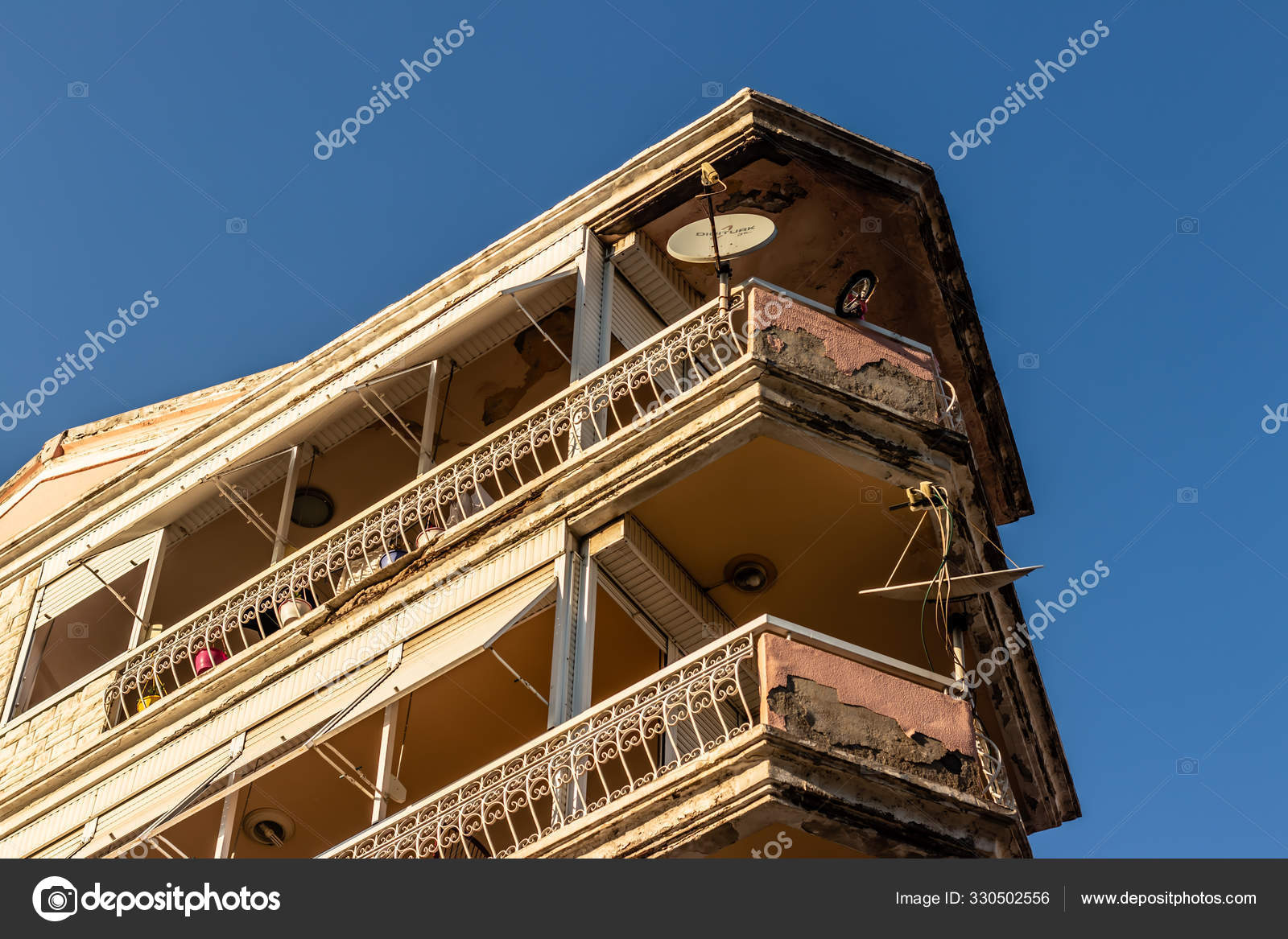 A Bottom Up Corner Shoot From An Old Building Good Looking Bal Stock Photo C Swonie 330502556