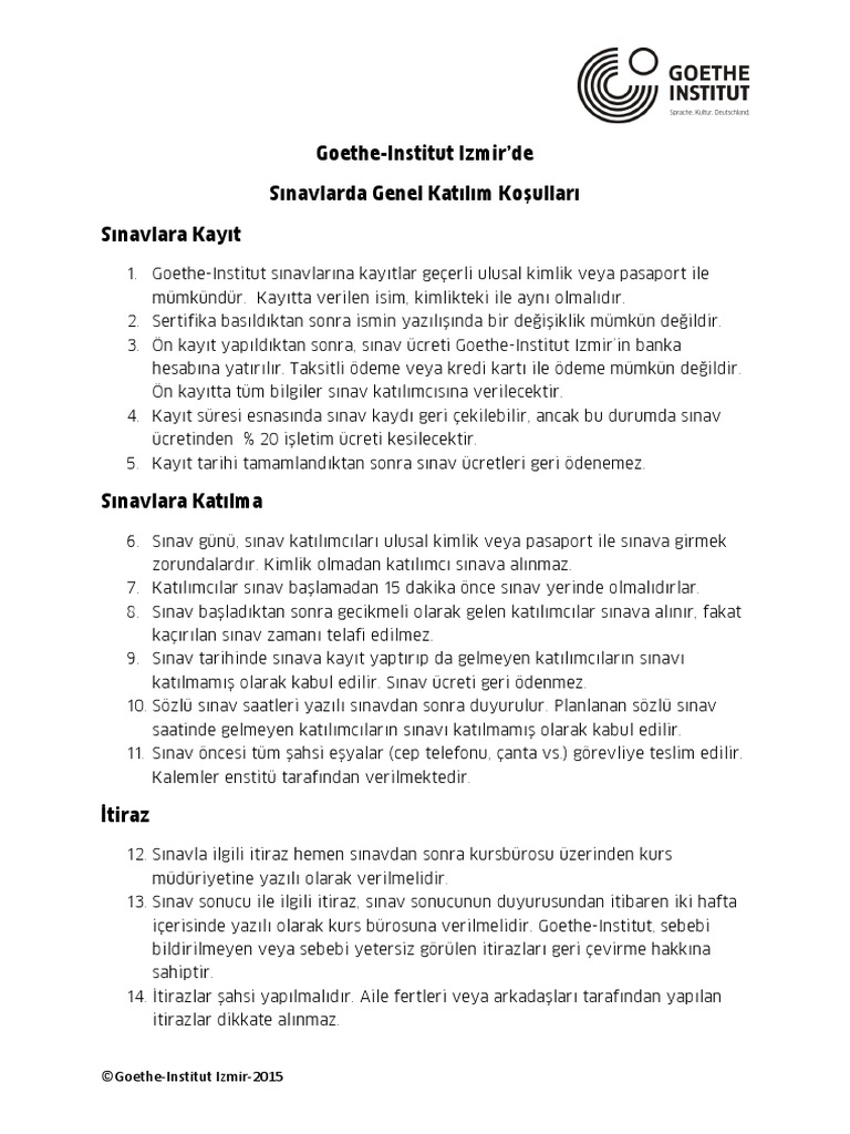 Goethe Institut Izmir De Sinavlarda Genel Katilim Kosullari Sinavlara Kayit
