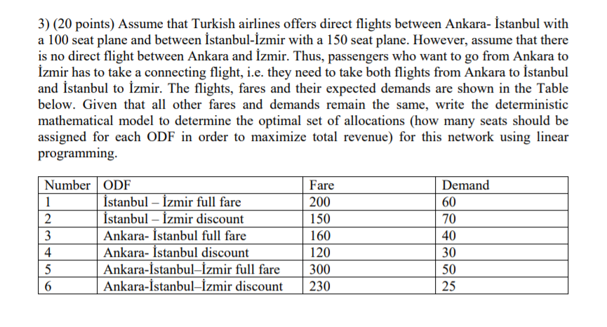 Solved 3 20 Points Assume That Turkish Airlines Offers Chegg Com