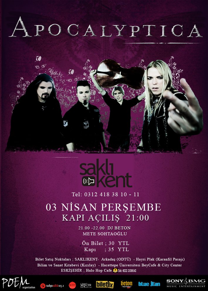 Apocalyptica Turkiye Turnesi 2008 Izmir At Ooze Izmir On 4 Apr 2008 Last Fm