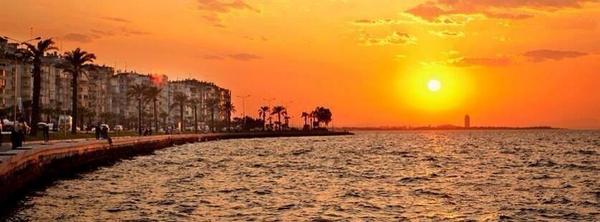 İzmir de kordon boyunda gün batımıyla birlikte oluşan kızıllık ve sahil boyunca yürüyen insanların silüeti güzel görüntüler oluşturdu. Barları deniz mahsulü ile ön plana çıkan lokantaları günbatımı alışveriş yerleri yürüme ve bisiklet parkuru ile herkesin kendinden bir şeyler bulabileceği uzadıkça uzayan bir sahil şeridi. Bazı vatandaşlar kordon boyunda yürüyüş yaptı.