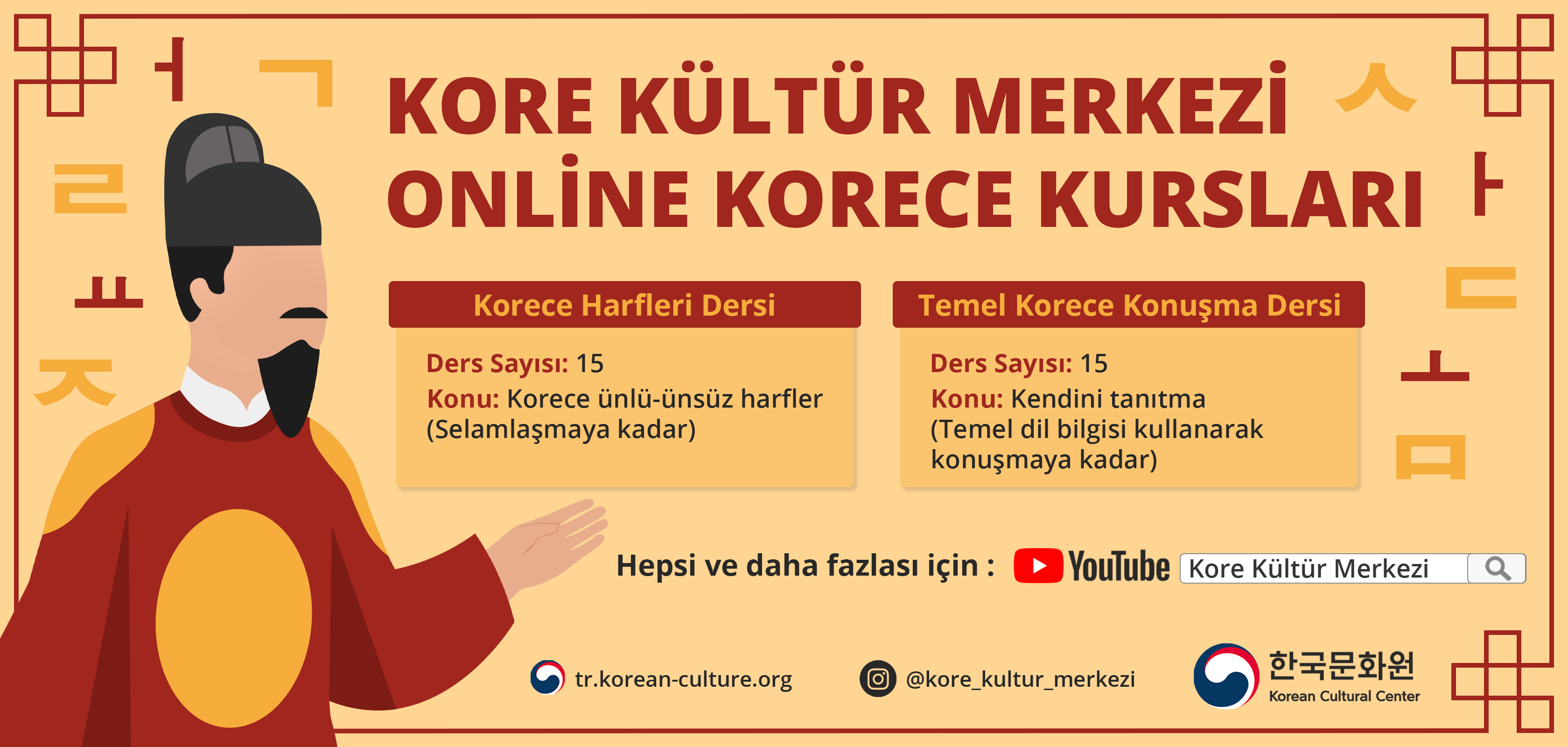 Türkiye de korece eğitim veren kurs sayısı çok az. Başlangıç seviyesinden ileri seviyeye kadar tüm öğrenciler için uygun geniş bir kore dil kursu yelpazesi sunuyoruz. çeşitli yabancı dil kursu sunan bu yerler ya ücretsiz ya da çok cüzi ücretlerle dil kursu sunarlar. Eğer i̇stanbul i̇zmir ankara gibi büyük şehirlerde yaşamıyorsanız korece kursu bulmanız da çok zor.