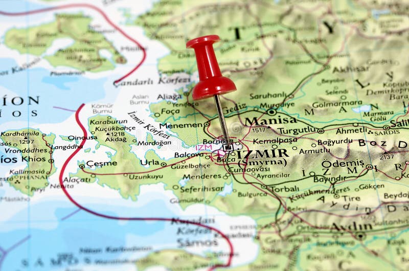 Close Up Of Izmir Turkey Map With Red Pin Travel Concept Stock Photo Alamy